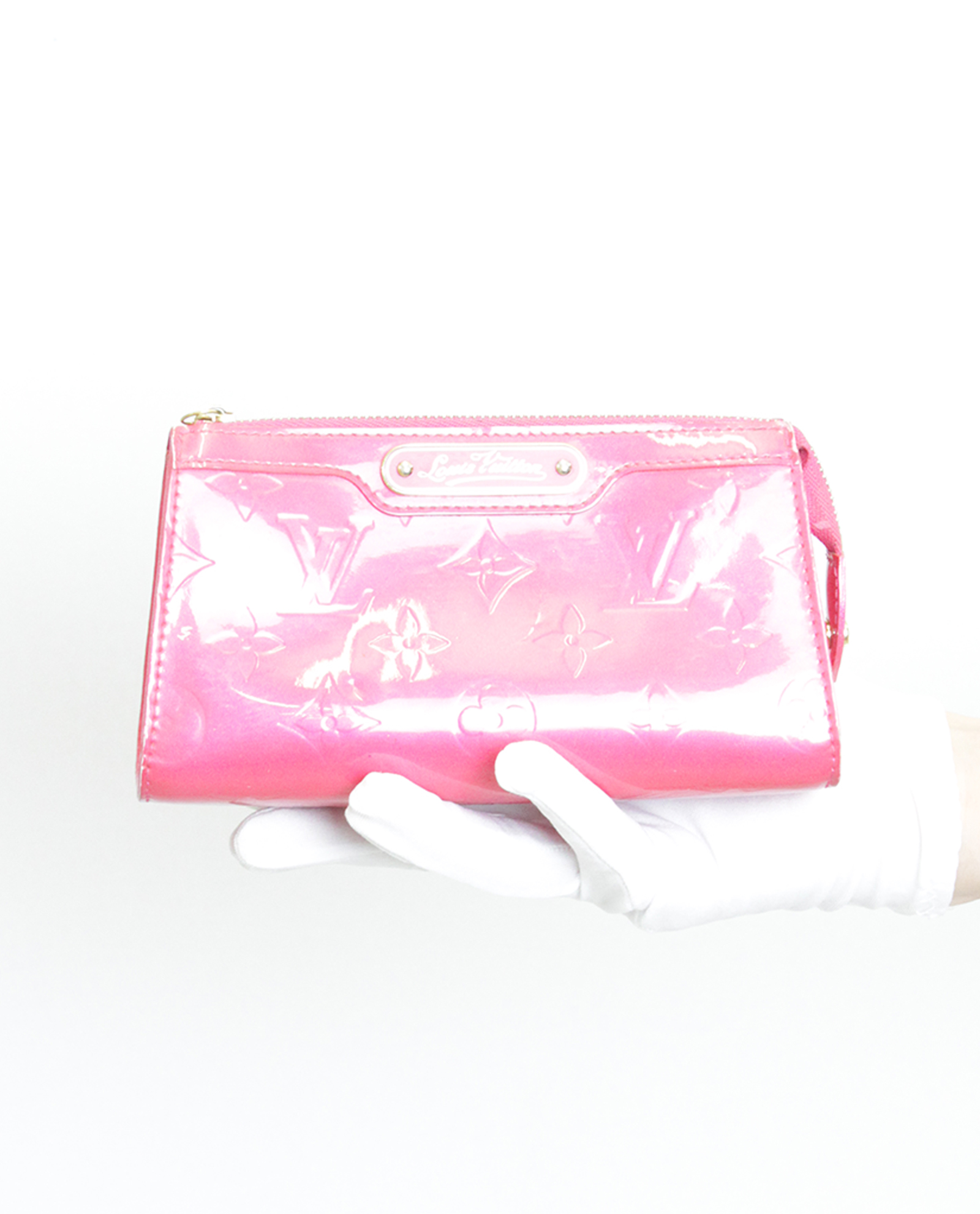 Este neceser de la firma francesa Louis Vuitton del año 2008 está elaborado en Vernis en color fucsia con piezas metálicas en dorado. Su tamaño es pequeño. Es ideal para el día a día.
